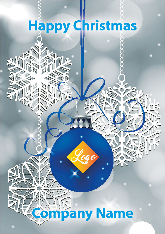 Blue Decoration are Gloss finished and suitable for corporate, business, company or personal use. 625-620 is a perfect choice for small to large companies. Our Blue Decoration Christmas cards are printed onto a premium thickness board, acquired only from sustainable sources and produced in the UK. Your inside personalisation is peronalised directly onto the card. Blue Decoration are sized at 148x210mm. Front Personalised Chritmas Card