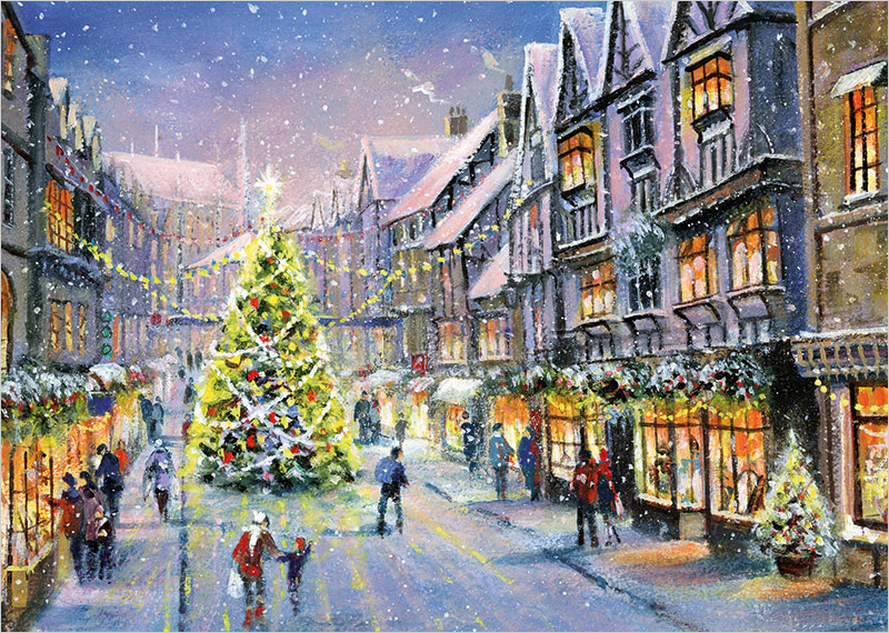 Christmas Street are Gloss finished and suitable for corporate, business, company or personal use. 025-025 is a perfect choice for small to large companies. Our Christmas Street Christmas cards are printed onto a premium thickness board, acquired only from sustainable sources and produced in the UK. Your inside personalisation is peronalised directly onto the card. Christmas Street are sized at 210x148mm.