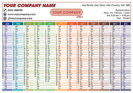 Coloured Months A3 Wall Planner are satin finished and suitable for corporate, business, company or personal use. AGC0589 is a perfect choice of Wall Planner. Our Coloured Months A3 Wall Planners are printed onto a premium thickness board, acquired only from sustainable sources and produced in the UK. Your inside personalisation is printed directly onto the card. This calendar measures 267mm x 420mm.