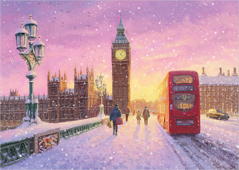 Snow over Westminster Bridge are Gloss finished and suitable for corporate, business, company or personal use. 025-003 is a perfect choice for small to large companies. Our Snow over Westminster Bridge Christmas cards are printed onto a premium thickness board, acquired only from sustainable sources and produced in the UK. Your inside personalisation is peronalised directly onto the card. Snow over Westminster Bridge are sized at 210x148mm.