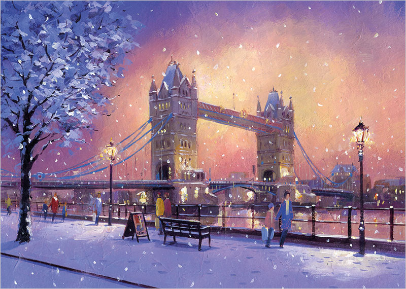 Tower Bridge at Christmas are Gloss finished and suitable for corporate, business, company or personal use. 025-011 is a perfect choice for small to large companies. Our Tower Bridge at Christmas Christmas cards are printed onto a premium thickness board, acquired only from sustainable sources and produced in the UK. Your inside personalisation is peronalised directly onto the card. Tower Bridge at Christmas are sized at 210x148mm.